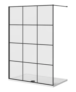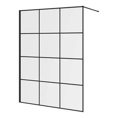 (1) W1400 x H1950 Matt Black Grid 8mm Wetroom Screen inc. Matt Black Arm