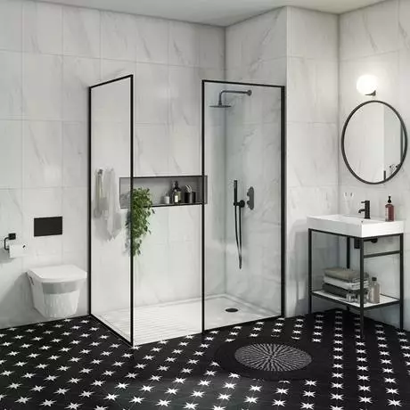 Make your shower a focal point of the bathroom with the Arezzo Square Framed Walk In Wetroom Enclosure with Tray. The striking frame in matt black aluminium instantly lends your space a modern, designer feel, the generously proportioned walk in shower tray is 1400mm wide, providing a decent sized space for drying off after your shower. Its low profile design in glossy white acrylic has a minimalist appeal and is light and durable too. Conveniently, the surface is also super easy to clean. To up the indulgence factor even further, pair the Arezzo shower door with a matching Matt Black Fixed Shower Head from the same brand.