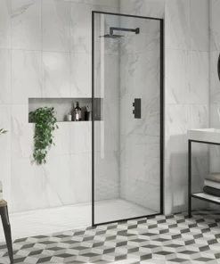 Make your shower a focal point of the bathroom with the Arezzo Square Framed Wetroom Screen with Tray. The striking frame in matt black aluminium instantly lends your space a modern, designer feel, the generously proportioned walk in shower tray is 1600mm wide, providing a decent sized space for drying off after your shower. Its low profile design in glossy white acrylic has a minimalist appeal and is light and durable too. Conveniently, the surface is also super easy to clean. To up the indulgence factor even further, pair the Arezzo shower door with a matching Matt Black Fixed Shower Head from the same brand.