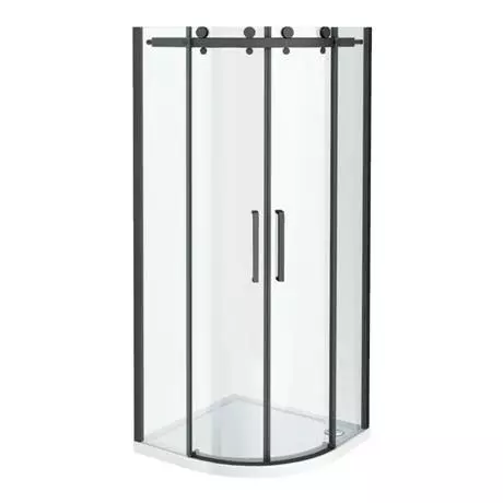 Make a statement in a compact bathroom with this Arezzo Frameless Quadrant Shower Enclosure. It measures 800mm wide to fit snugly into a corner of your bathroom, with a sweeping curved side that maximises space in the room. Striking matt black lines stand out against the glass, which is toughened for your peace of mind. This Arezzo shower enclosure has an exposed brass roller to allow doors to slide back and forth smoothly. You can further enhance the contemporary style by lining the area with Rhodes White Gloss Marble Effect Wall Tiles.