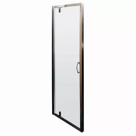 This pivot shower door from the Ella shower range features 5mm toughened safety glass. The frame of the shower door has a satin chrome finish with a outward opening pivot door for easy access. The pivot door is positioned slightly in from the edge of the shower door frame, to give extra stability and also a smaller arc of movement, allowing this door to be fitted in even small spaces. Our pivot shower doors can be used with both alcove showers and paired with glass side panels for a full square shower enclosure.