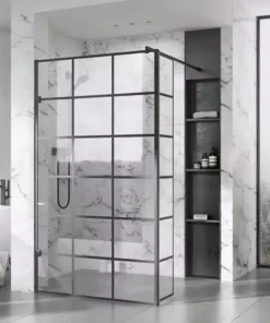 Hudson Reed Black Frame Wetroom Screen with Support Arm