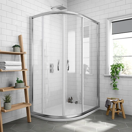 Step into a spacious shower with the Newark Offset Quadrant Enclosure. Framed by elegant curving doors, this shower cubicle creates a soft contour in your bathroom, harmonising the space. Fit this corner shower easily to left- or right-hand shower trays thanks to the fixture’s practical reversible design. Toughened 5mm glass ensures durability and safety. This stylish shower enclosure is finished with satin chrome frames for timeless appeal in your bathroom.