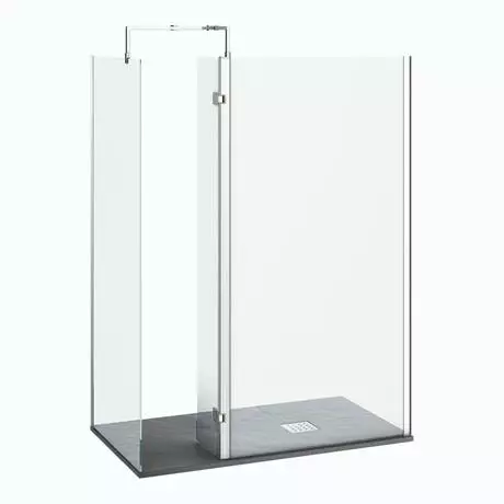 The luxury Nova frameless wet room enclosure features a 8mm thick clear glass panels with a return, ideal for creating a minimalist stylish showering area in your bathroom. Supplied with a textured graphite slate effect rectangular shower tray with a sleek ultra-low profile which provides ample space to wipe down after a shower.